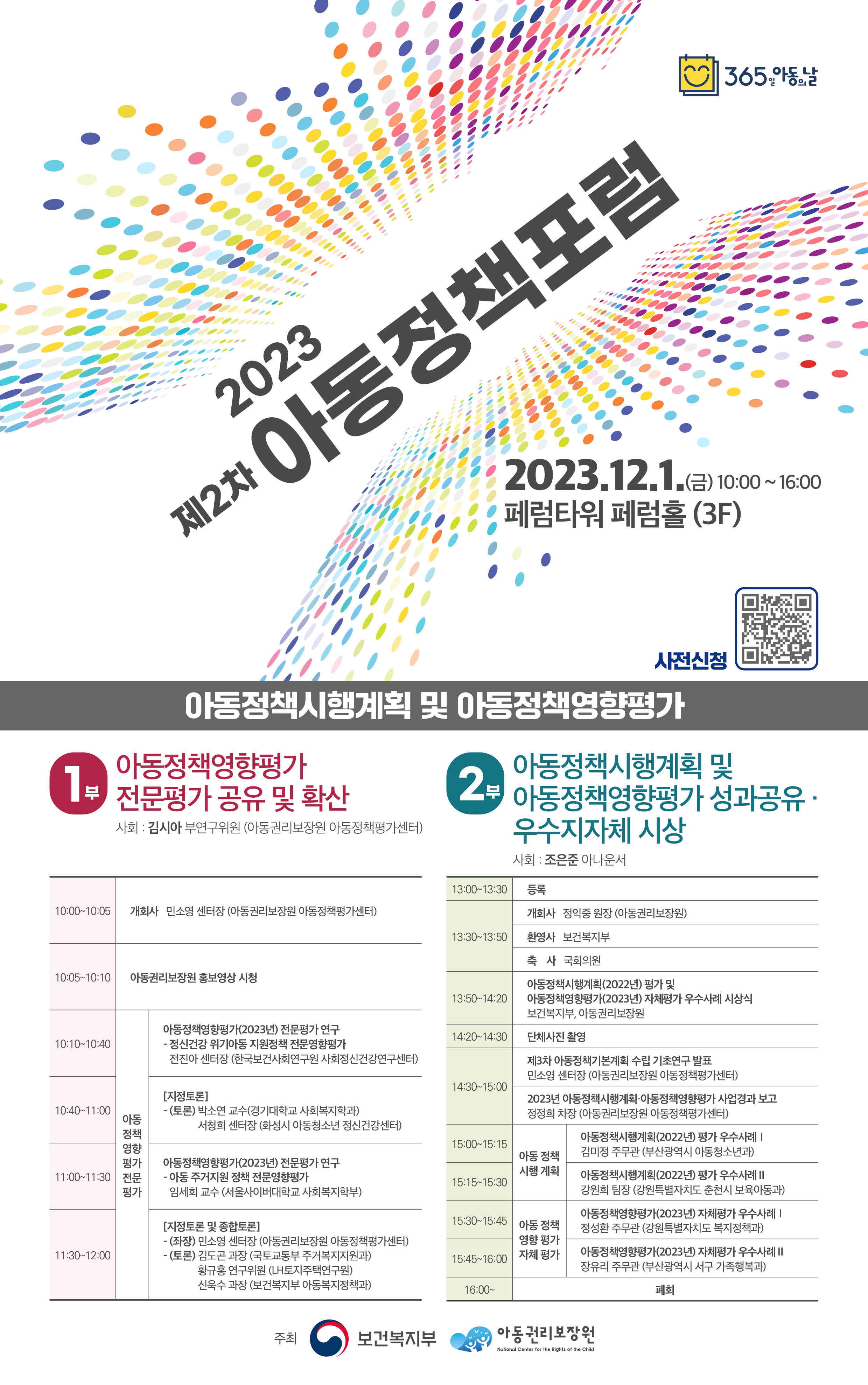 본 포럼에서는 중앙부처 및 지자체 평가결과와 아동정책영향평가 연구결과를 발표하며,