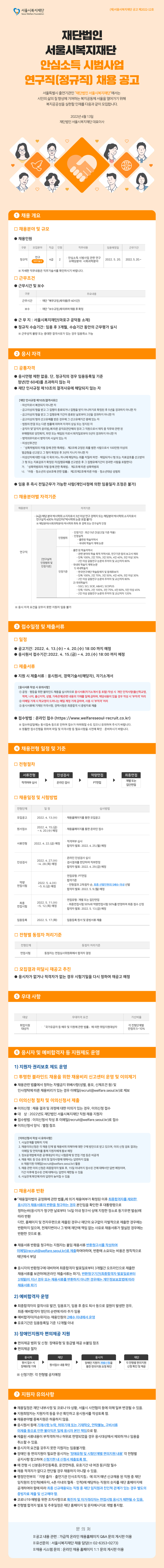 재단법인 서울시복지재단 안심소득 시범사업 연구직(정규직) 채용 공고