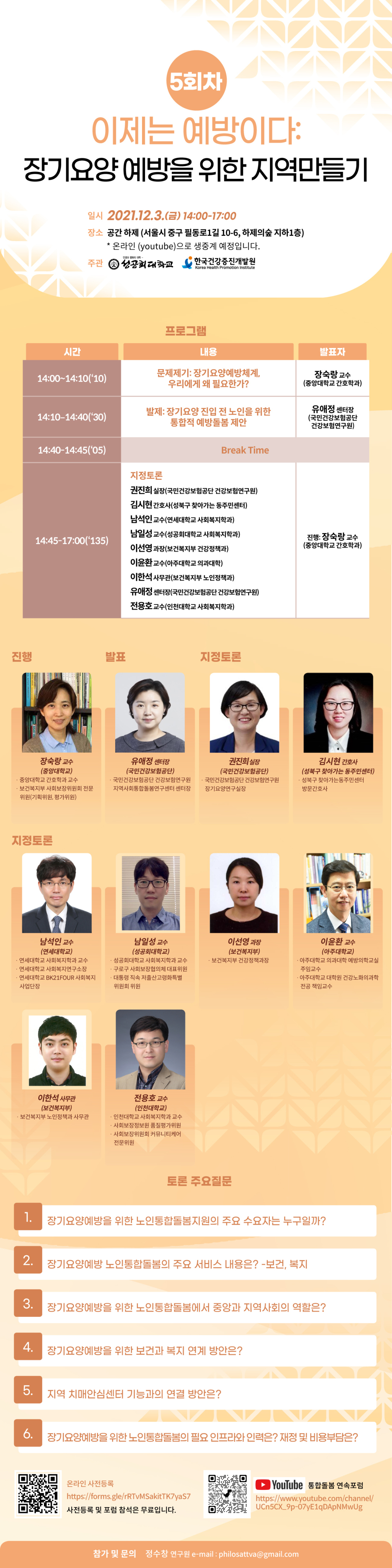 [지역사회 통합돌봄] 연속포럼 5회차 : 이제는 예방이다. 장기요양예방을 위한 지역만들기 개최안내