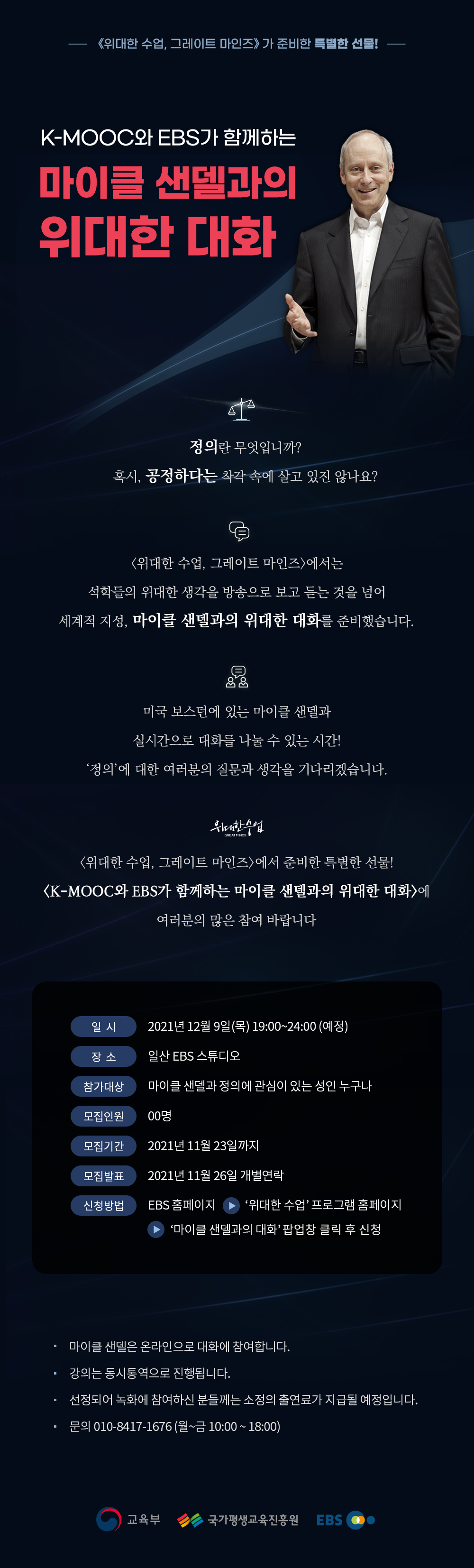 [EBS] '마이클 샌델과의 위대한 수업' 참여 안내
