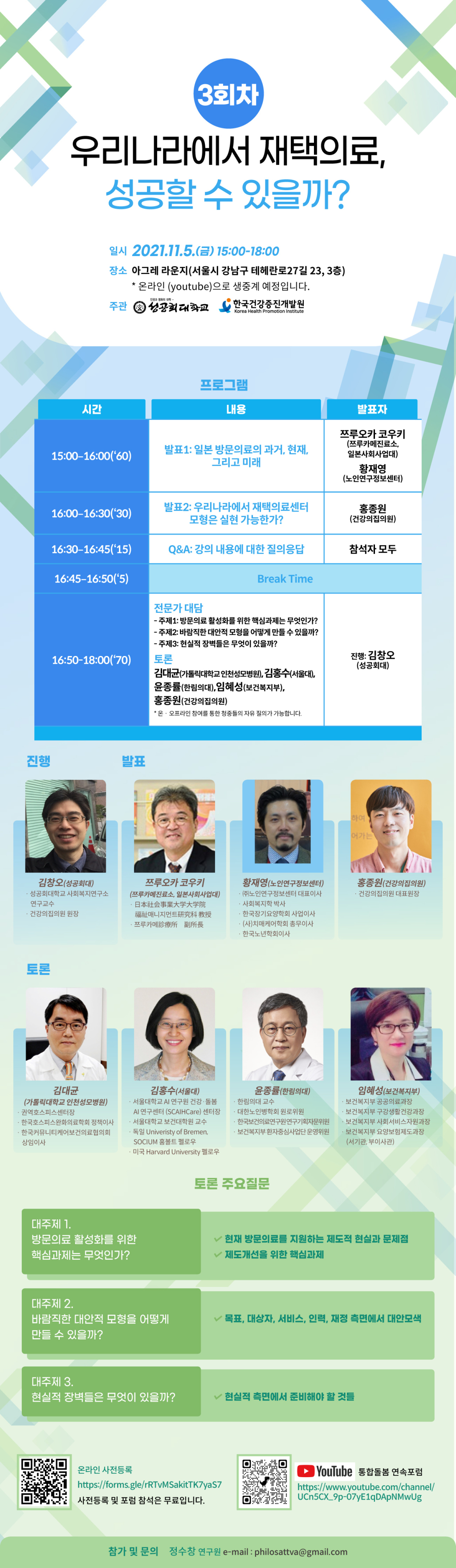 [지역사회 통합돌봄] 연속포럼 3회차 : 우리나라에서 재택의료, 성공할 수 있을까? 개최안내