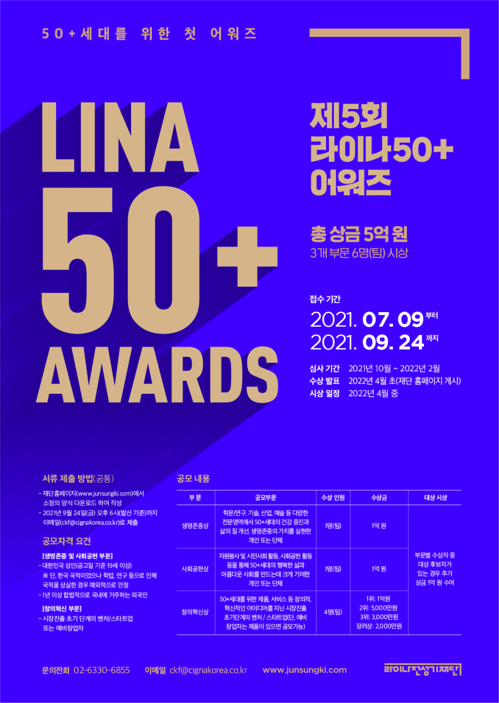 [시상사업] 제5회 라이나50+어워즈 사회공헌상 수상자(단체) 공고