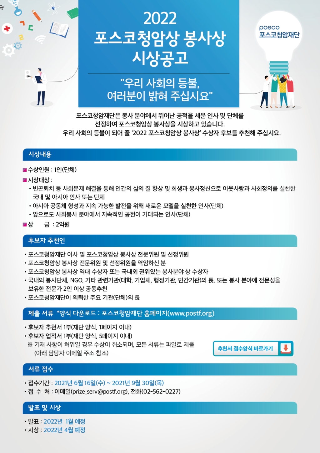 [포스코청암재단]2022 포스코청암상-봉사상 시상공고