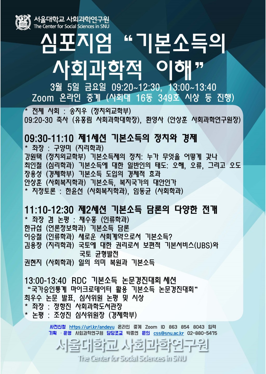 - 문의: 사회과학연구원 행정실(02-880-5475, css@snu.ac.kr)