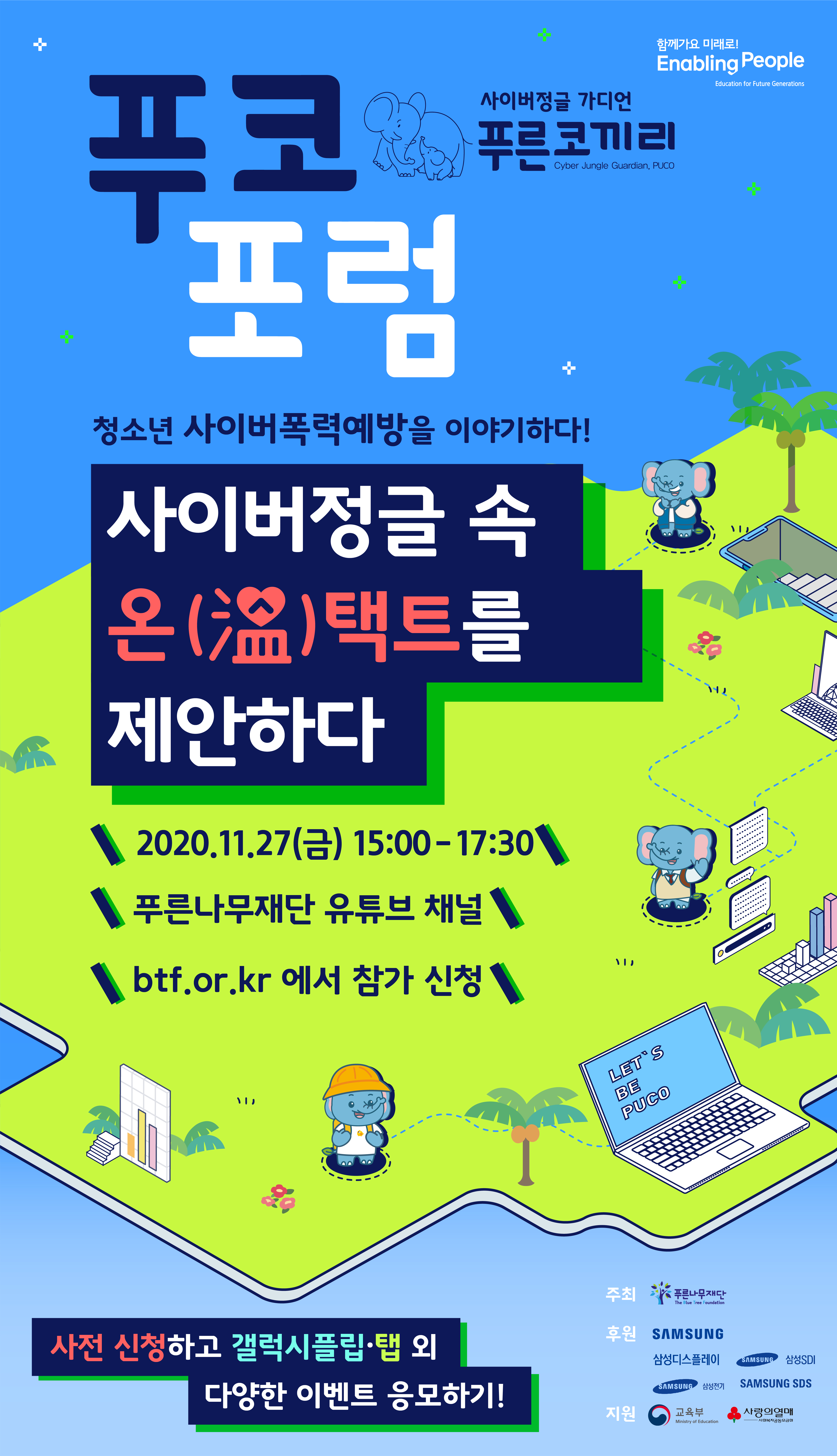 본 포럼은 언텍트 형태로 진행됩니다. (11/27 금 15시, 유튜브 : 푸른나무재단)