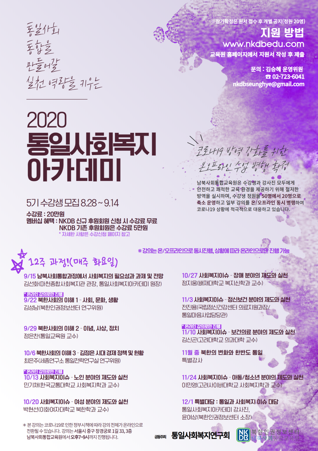 [북한인권정보센터] 통일사회복지아카데미 수강생 모집(~9/14까지)