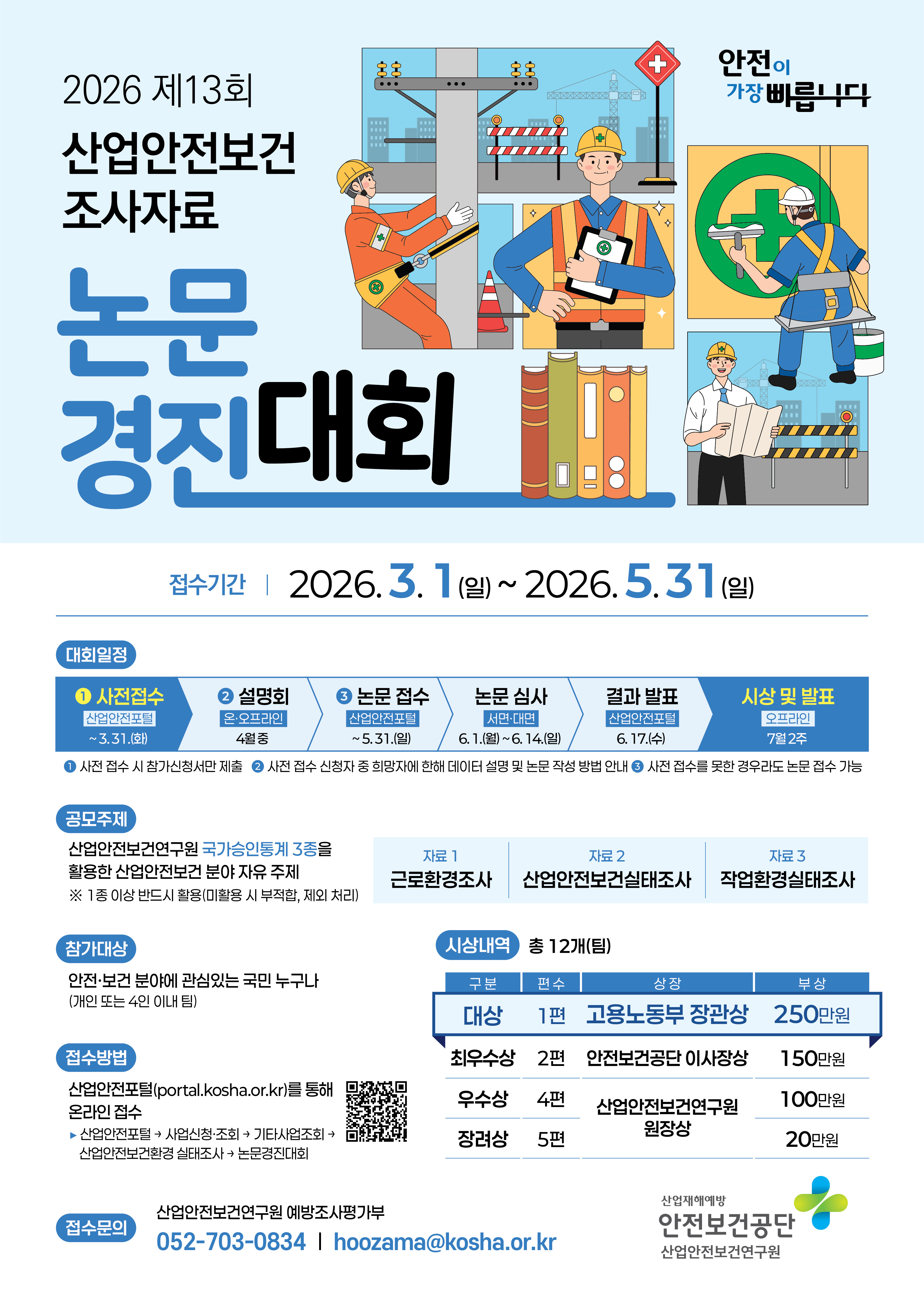3. 참여방법 : 산업안전포털(portal.kosha.or.kr 을 통해 온라인 접수 ) (접수 마감: 2026.5.31.)